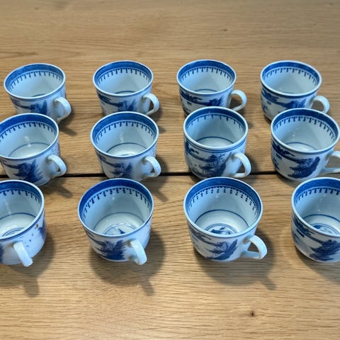Myydään 8 riisiposliinikuppia ja 5 lautasta. Kaikki erinomaisessa kunnossa. Kuppien korkeus noin 5cm ja halkaisija noin 9cm. Lautasten halkaisija noin 14cm.