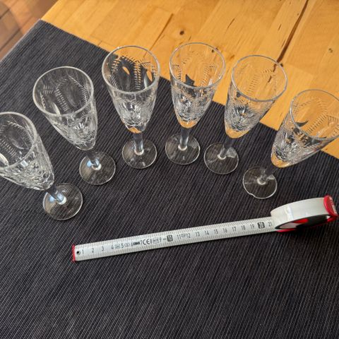 Upeat kristalli samppanjalasit 14,7 cm korkeat ja halkaisija noin 10,8 cm.