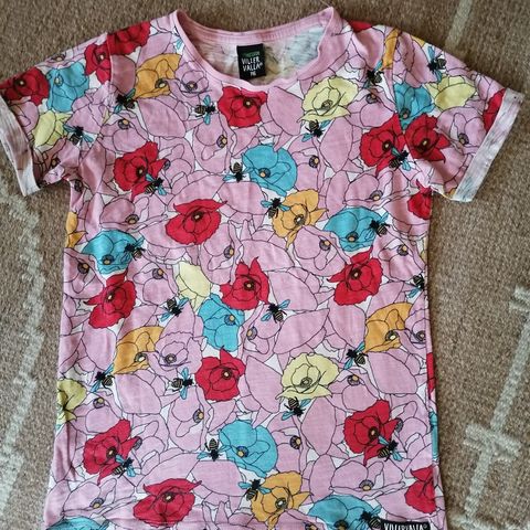 Hyväkuntoinen (ei merkintöjä) Villervalla-paita. Siniharmaat raidat. Koko 146.