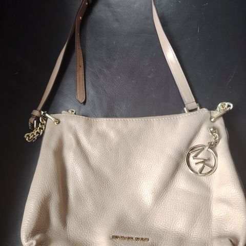 Michael Kors tekonahkainen olkalaukku naisille. Laukussa on ruskea väri ja sen päällä näkyy Michael Korsin logo. Laukussa on säädettävät nahkaiset olkahihnat ja sisällä vetoketjutasku sekä muita pieniä taskuja. Laukku on virheetön. Se on ostettu Helsingin Stockmannilta.