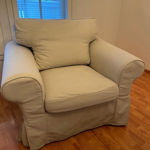 Myydään Ektorp nojatuoli beigellä päällisellä, mukaan saa myös valkoiset päälliset. Tarjoa rohkeasti hintaa!