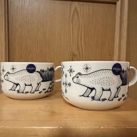 4kpl Pakkanen -mukeja. 1kpl 35€, 4kpl 100€ yhteishintaan. Mukit ovat käyttämättömiä ja tarroilla.