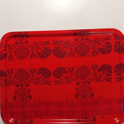 Myydään Marimekon iso peltinen tarjotin jonka halkaisija on 48.5cm.