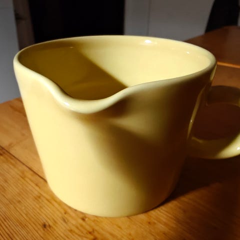 Arabia Teema posliinikannu keltainen 15 eur, Arabia Teema sokerikko ja kermakko keltainen 12 eur/kpl