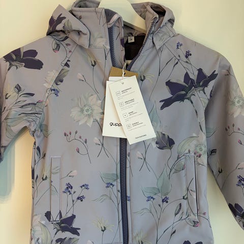 Guppy tummanvihreä softshell-haalari (UUSI). Kuosina metsää ja eläimiä. Käyttämätön, kaikki laput kiinni. Lapsi ehti kasvaa koon ohi ennen haalarin käyttöön ottamista.