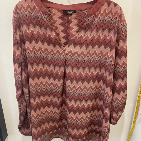 AMISU Pusero naisten vaate, koko XL, ruskean värinen. Puserossa on pitkä hiha ja kuvioitu kuosi. Hinta 4€