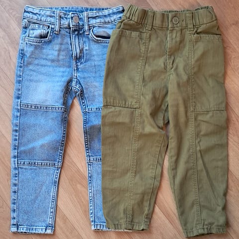 Myydään kolmet kangashousut koossa 104 cm. Siniset x2 Lindex ja Vihreät H&M. Säädettävät kuminauhat vyötäröllä. Siistit, vähän käytetyt.