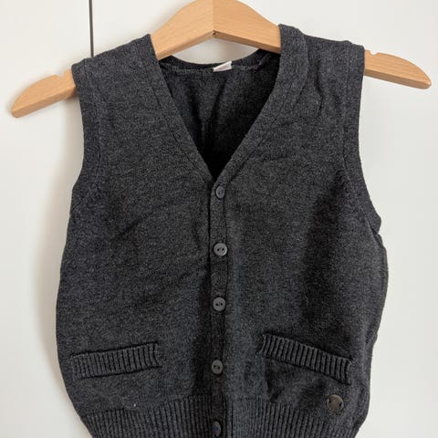 Myydään lasten harmaa neuleliivi koossa 82 cm.