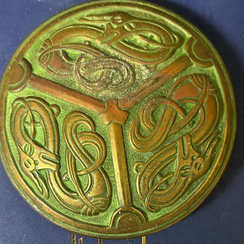 Lohikäärme kuviollinen keskiaikainen pinssi pronssista.