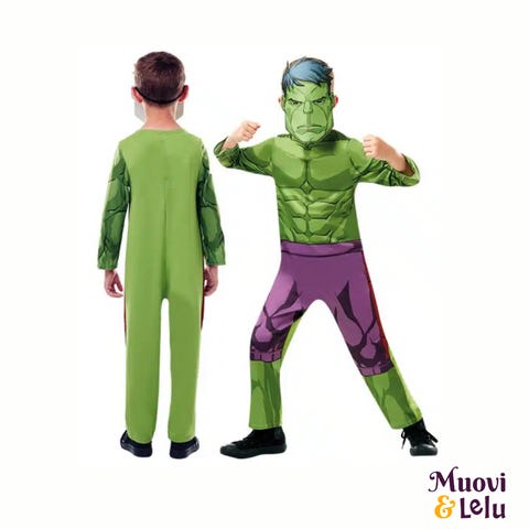 Lasten naamiaisasu Hulk 4-7 v – Muuttu Hulkiksi salamaa nopeammin tällä paidan ja naamion sisältävällä setillä. One Size sopii noin 4-7-vuotiaille lapsille. 117-128 cm