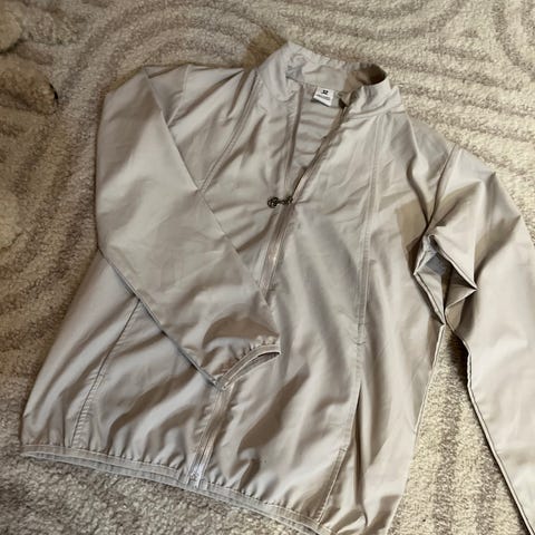 Myydään tummanharmaa Cutter&Buck sadetakki, verkkovuori, teipatut vetoketjusaumat, useita taskuja, koko M.