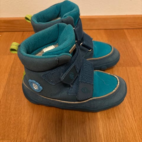 Myydään todella hyväkuntoiset yhden talven (pienemmillä pakkasilla) yhdellä lapsella käytössä olleet Affenzahnin paljasjalkatalvikengät.