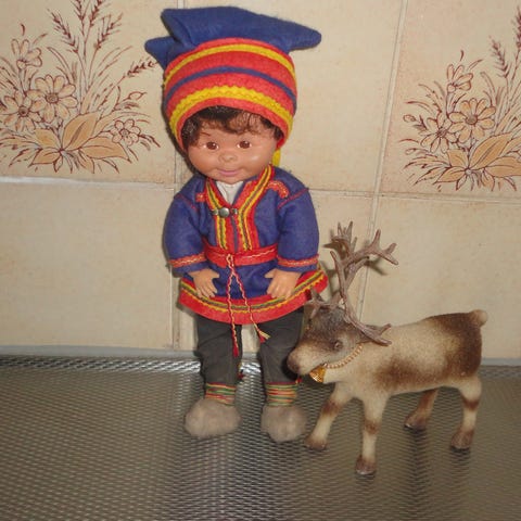Nukke on siistissä kunnossa, pidetty koristeena. Nukke istuu ja seisoo tuettuna, silmät sulkeutuvat pitkällään pidettäessä. Hikuksia ei ole. Pituus 33 cm