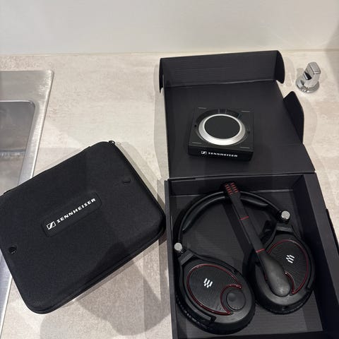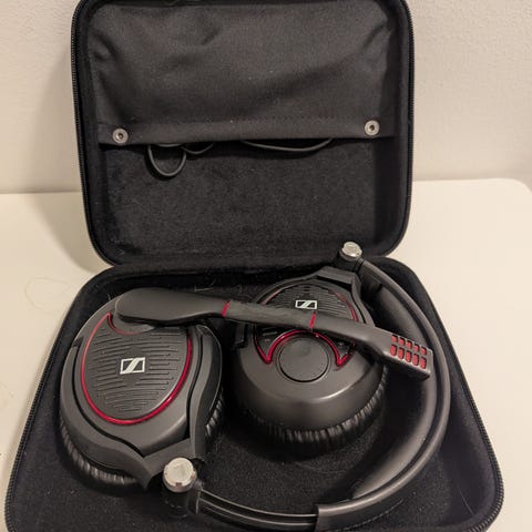 Sennheiser -pelikuulokkeet 3.5mm liitännällä. Kupit ja sangan pehmusteet ovat aika kuluneet.