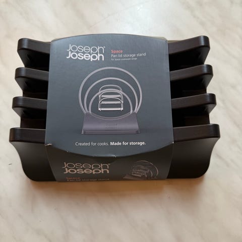 Joseph Joseph - kattilan kansitelineen avulla pidät kannet järjestyksessä ja helposti löydettävissä. Voit laittaa telineeseen vaikkapa kolme erikokoista kantta. Käyttämätön, vielä pakkauksessa.