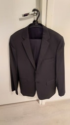 Kerran käytetty poikain puku, takki 164 ja housut 158