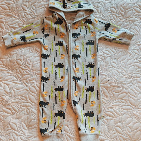 Myydään harmaa eläinkuosinen Pippi collegejumppis / haalari / oloasu, koko 62.