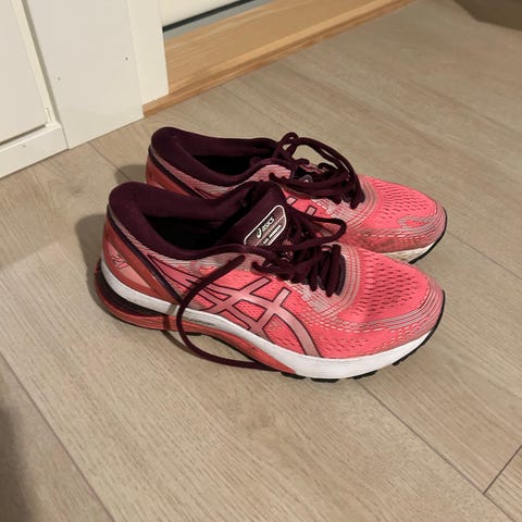 Asics juoksukengät, koko 40. Värit musta ja punainen, sisävuori keltainen. Materiaali hengittävä kangas ja synteettiset osat. Sopivat juoksuun ja vapaa-ajan käyttöön.
