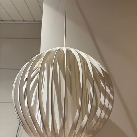 Juuri otettu käytöstä pois, eli toimii hyvin. Tarvitsee 3x lamppua max 53 W, ei sisälly mukana.