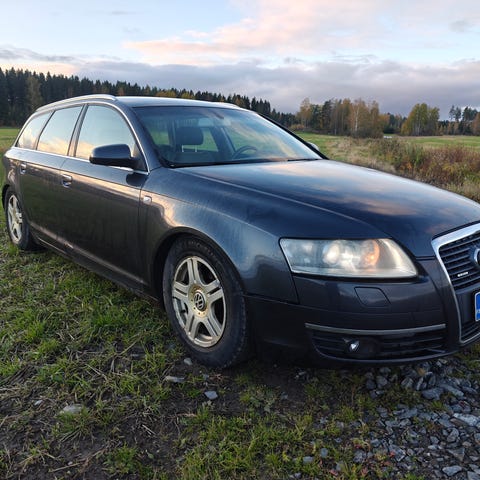 Audi A6 Farkku, jossa sininen ulkoväri ja ruskea nahkasisustus. Myydään osina, kuskinpuolen etukulma saanut osumaa, muutoin aika siisti facelift mallin Audi. Iso nippu huoltokuitteja esim. vuoden aikana about 4tonnin edestä huollettu. Veroja 150-200€ rästissä jos meinaa vielä liikenteeseen.