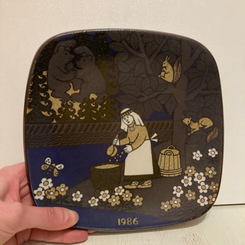 Myydään pieni Arabian Kalevala lautanen v. 1983. Halkaisija 6,5 cm