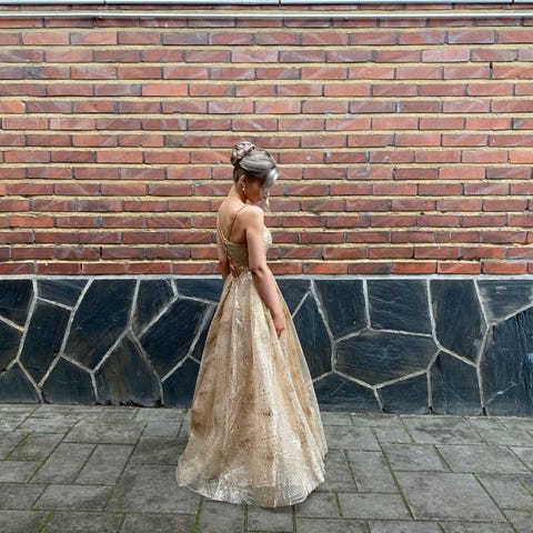Upea vaaleansininen wanhojenmekko, kerran käytetty. Sopii jopa 173cm pituiselle.