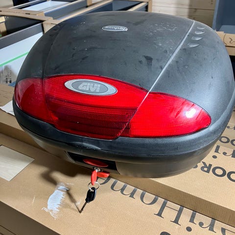 GIVI monolock system moottoripyörän takaboxi kiinnikkeineen (2) kahdella avaimella.