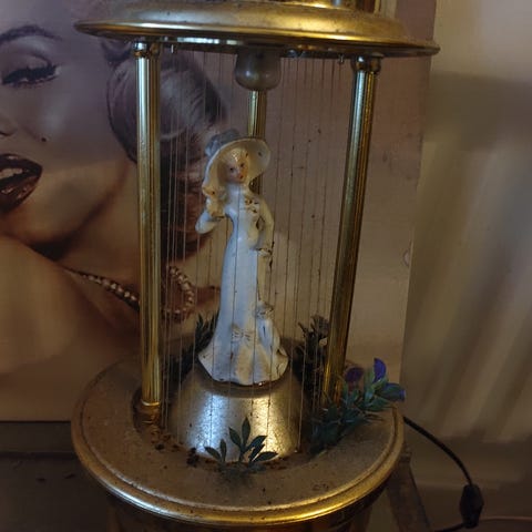 Messinki jalusta, polttoputki ja lasikupu. Sähköistetty. Erinomainen kunto, kuvissa pölyinen, myydään pölyistä pyyhittynä - kuvista 4-7 näkee. 1900-luvun alulta.
