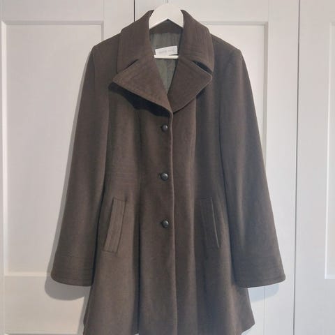 Beige, mukaan tulee kapea nahkavyö joka kuuluu takkiin