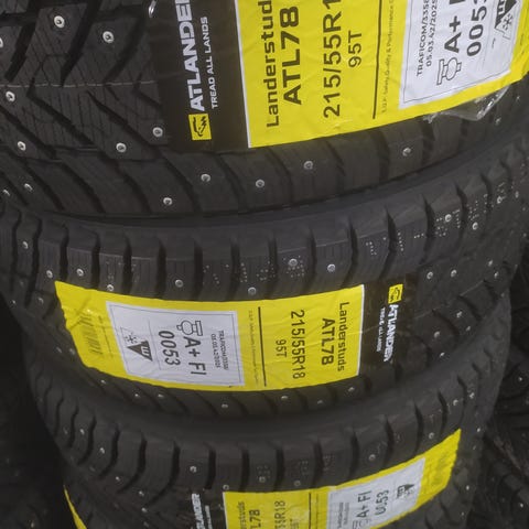 Sarja uusia ajamattomia 215/55R18" Nankang nastarenkaita.
