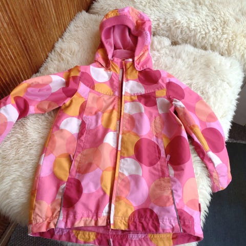 Irrotettava huppu, vyötärössä kiristys mahdollisuus. Kunnossa ei moitteita. Koko 104.