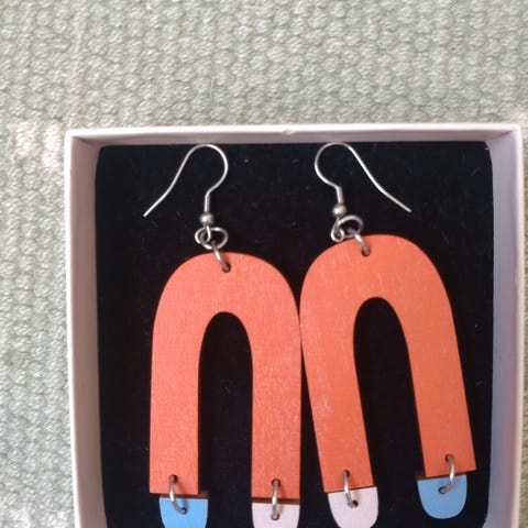 Käyttämättömät Mamakorun Puro korvakorut värissä tummansininen/tummanpunainen/ruskea. Vasemmanpuoleiset MYYTY.