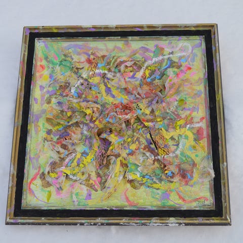 Oikeassa alareunassa teoksen putoamisesta johtuva jälki joka huomioitu hinnassa.