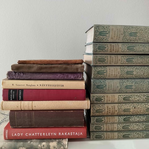 Paasikiven päiväkirjat 1. ja 2. 1944-1956 / Kaksi kovakantista kirjaa ilman kansipaperia. kirjojen ulkoinen kunto näkynee kuvista, lukusivut siistit, EX-Libris, omistus. Hinta 5,00 EUR.