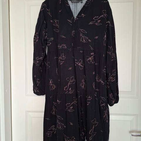 Musta Nosh-trikoomekko valkoisilla kukkakuvioilla.