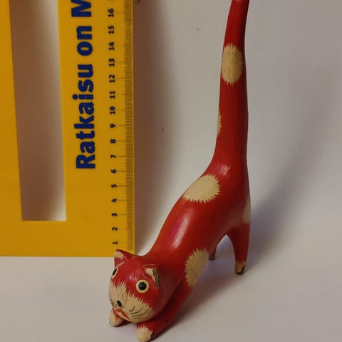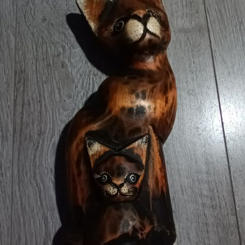 Myydään kuvan puinen kissakoriste keräilijän kokoelmasta.