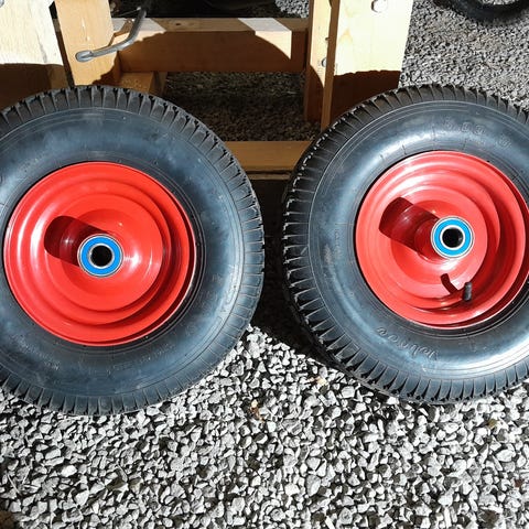Ylimääräsenä olevat rajun levikevanteet renkaineen. Hyvässä kunnossa ilmat pysyy sisällä. Pystyy käyttämään normi vanteenakin kun rälläköi kehän pois