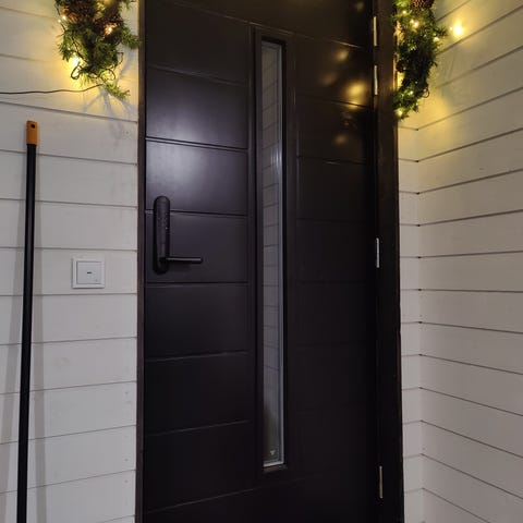 Terassiovi. Ei sisällä karmeja. Leveys 82 cm korkeus 220 cm. Sisältä valkoinen ulkoa musta.