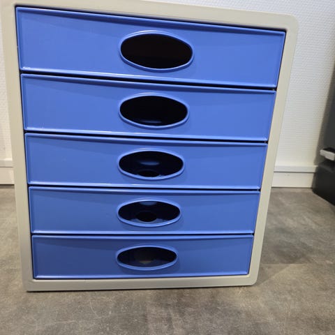 Muovinen laatikosto, jossa on viisi sinistä laatikkoa ja harmaa runko. Laatikosto soveltuu erityisesti lomakkeiden tai muun paperimateriaalin säilytykseen. Laatikosta virheettömässä kunnossa. Hinta: 10€. Löytyy Vaasasta/ Kivihaasta. Postittaessa ostaja maksaa postikulut.