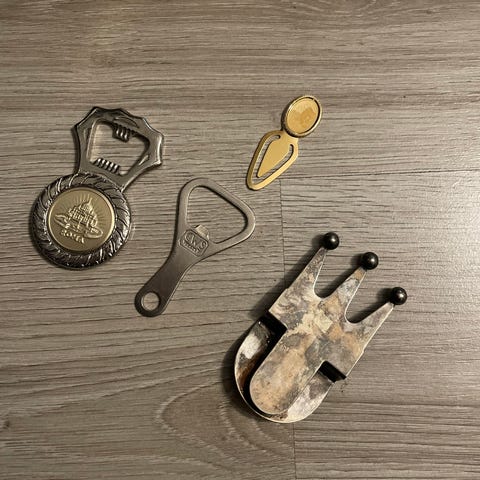 Kaksi pullonkaula kilpeä. Sherry kyltti on hopeinen. Ketjut kunnossa.