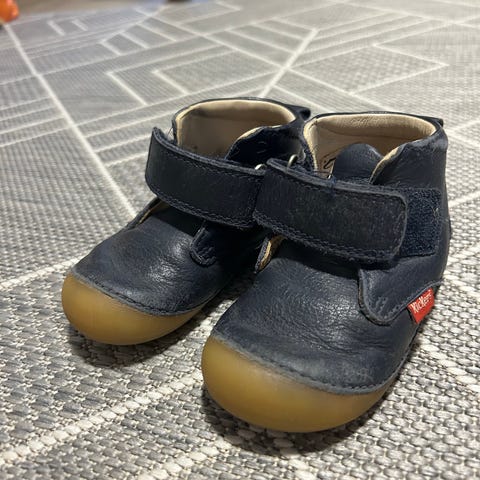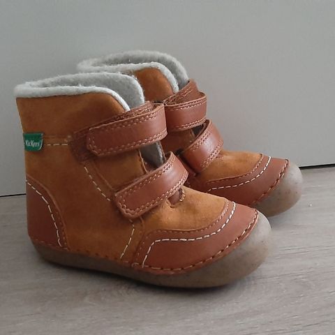 Kuluneet Kickers vauvan nahkakengät. Pinnat ja pohjat kuitenkin ehjät. Sopii vielä vaikka pihakäyttöön. Pehmeät ja joustavat, hyvät kävelyä opettelevalle. Toinen pohjallinen rikki (kuva).