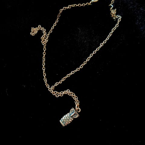 Pronssinen Kalevala Fauna Minervapöllö -kaulakoru. Siistissä kunnossa. Ketjun pituus n. 49,5 cm. Riipuksen pituus n. 1,9 cm.