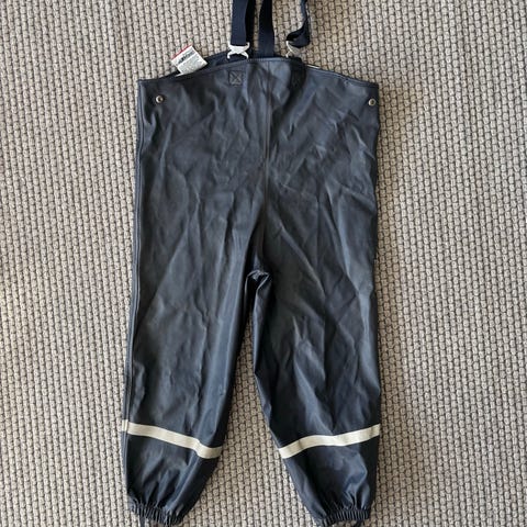 Didriksons Galon lasten sadehousut koko 120, väri tummansininen. Hyvä käytetty kunto, oikein siistit. Jalkalenksut pitää uusia.