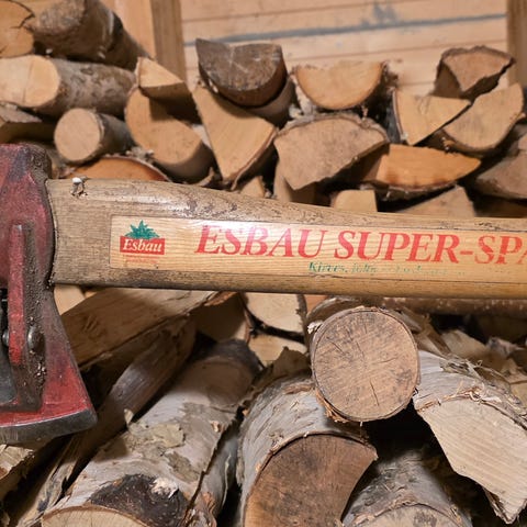 Järeä ja hyväkuntoinen halkaisukirves ylimääräisenä.