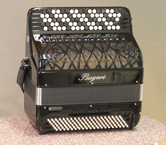 Tämä kolmiäänikerta on laadultaan italialaisiin täysin verrattava. Siinä on Tipo aMano -kielisarja ja mekaniikkakin perustuu italialaisiin osiin. Sointi on tanakka ja voimakas. Harmonikka on 43cm korkea ja on näppärän kokoisena helppo käsitellä. Soittimessa ei ole kulumia ja se on tiivis ja hyvässä vireessä. Kannattaa tutustua ja ihastua.