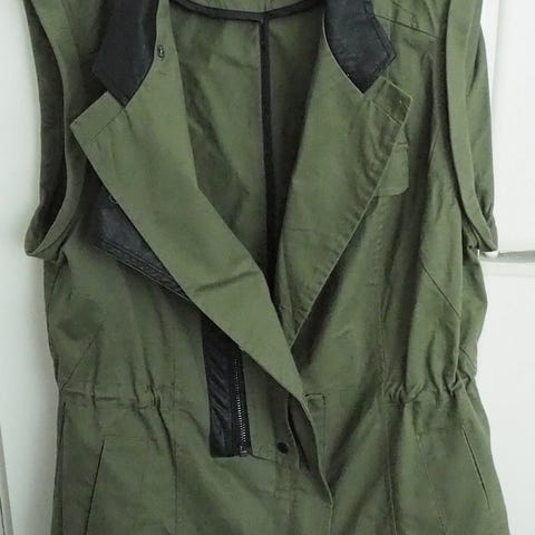 Siistikuntoinen farkkuliivi, kulutetuilla yksityiskohdilla. Edessä taskut sekä nappikiinnitys. Lyhyempi malli.