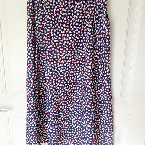 Retro hame 60-70 luvun designia. Hameen mittoja: vyötärö 70 cm ja pituus 110 cm. Kooksi mainittu 42, mutta vyötärön mitan perusteella 36-38. Tämä hame poikkeus Karvisen tuotannossa, yleensä olivat suunniteltu poppanasta. Hame pesty hajusteettomalla Ecover pesuaineella.