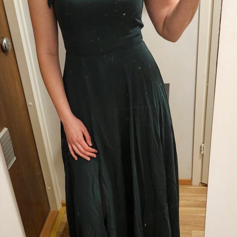 Käyttämätön vihreä kukallinen juhlamekko. Laput kiinni.