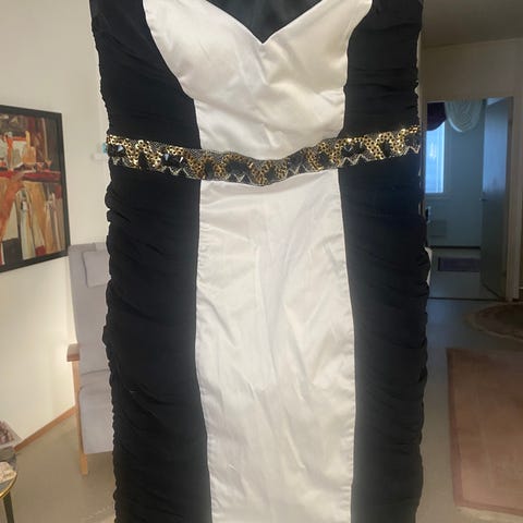 Käyttämätön mekko. Oli pitkä aika vaatekaapissa. Laadukas ja elegantti mekko. Kaunis istuvuus. Koko luultavasti S. Katso mitat. Mekko joustaa paljon. Nyt halvalla hintava alkuperin vaate.