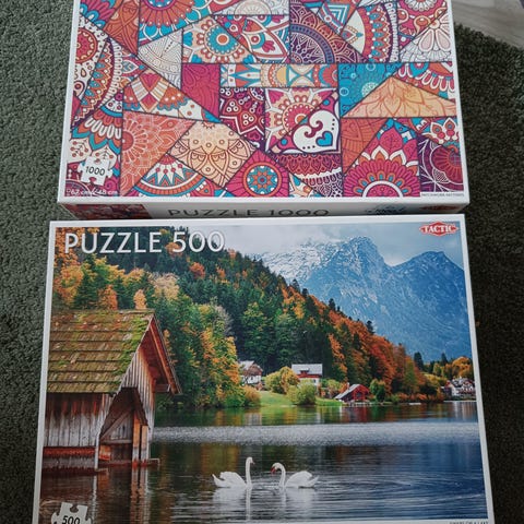 Kolme palapeliä. Kaksi 500 palan ja yksi 1000 palan peliä. Siistit ja ehjät. Yhdessä 15 euroa. Kaikki palat tallessa.